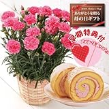 【送料無料!母の日ギフト】ピンクカーネーション5号鉢と苺ロールケーキのセット【5/8~5/10お届】【早期特典・母の日ピック付】